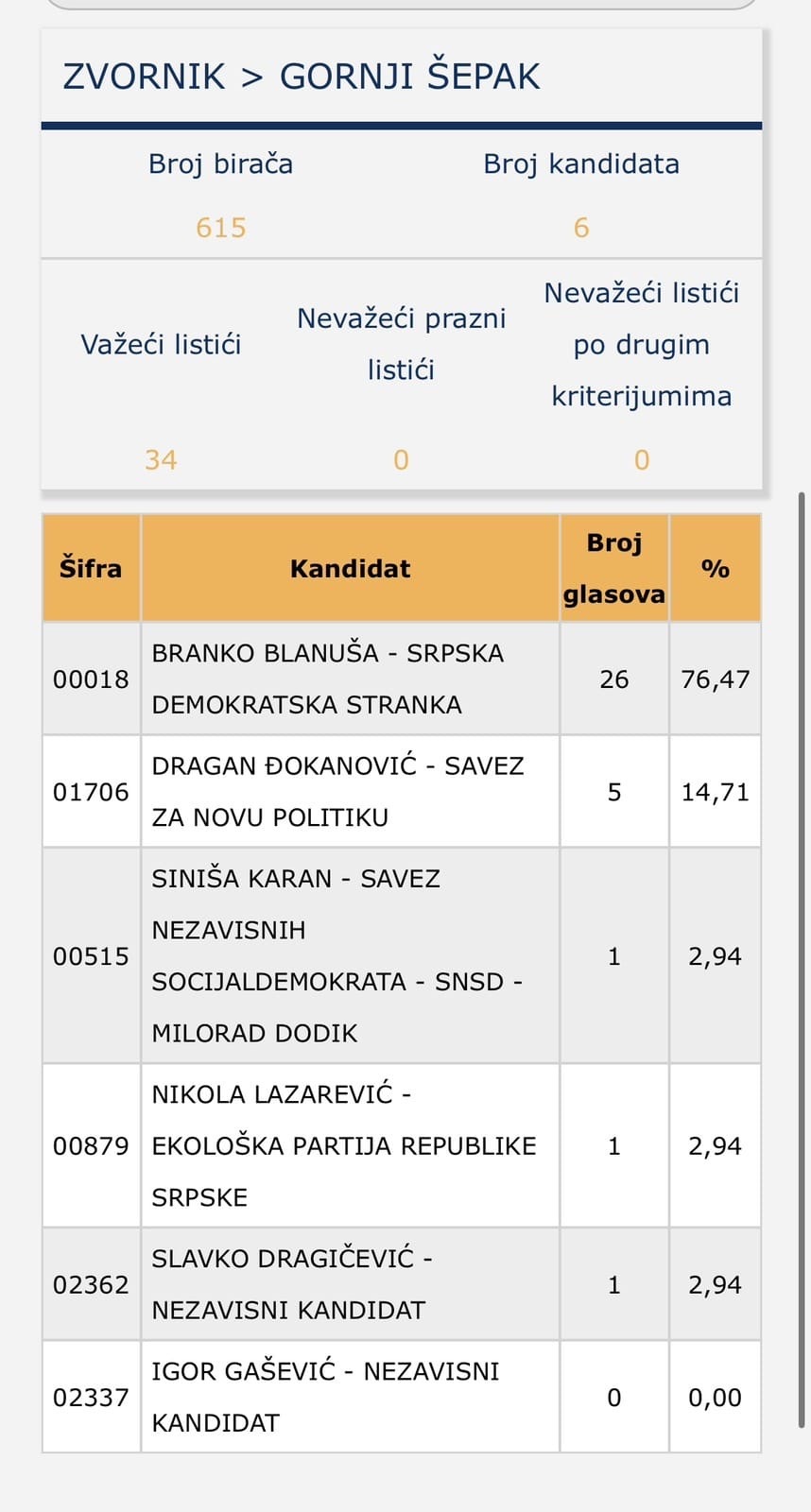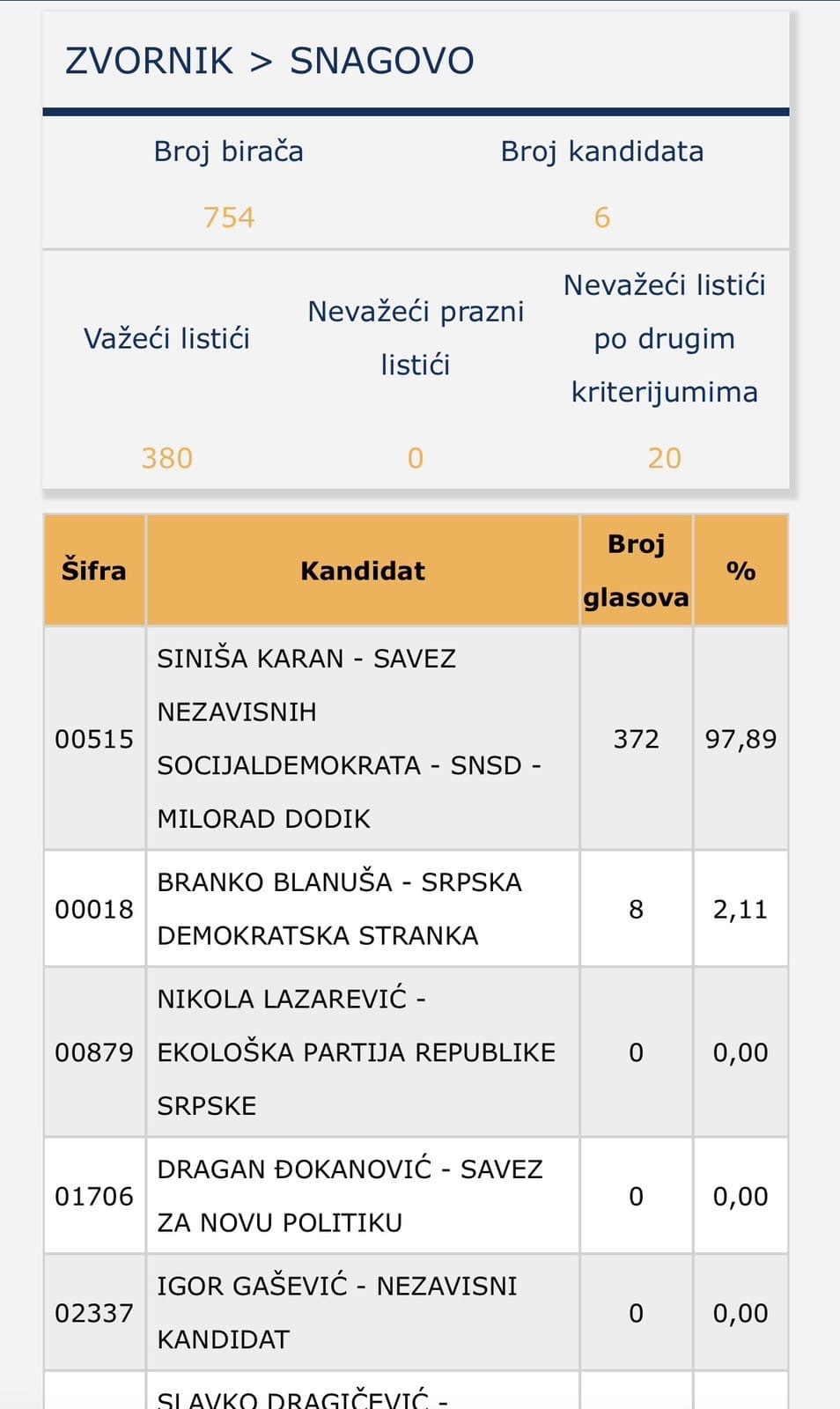 Slična situacija zabilježena je i u Grapskoj, rodnom mjestu ministra Sevlida Hurtića, gdje je SNSD također ostvario pobjedu Siniša Karan.