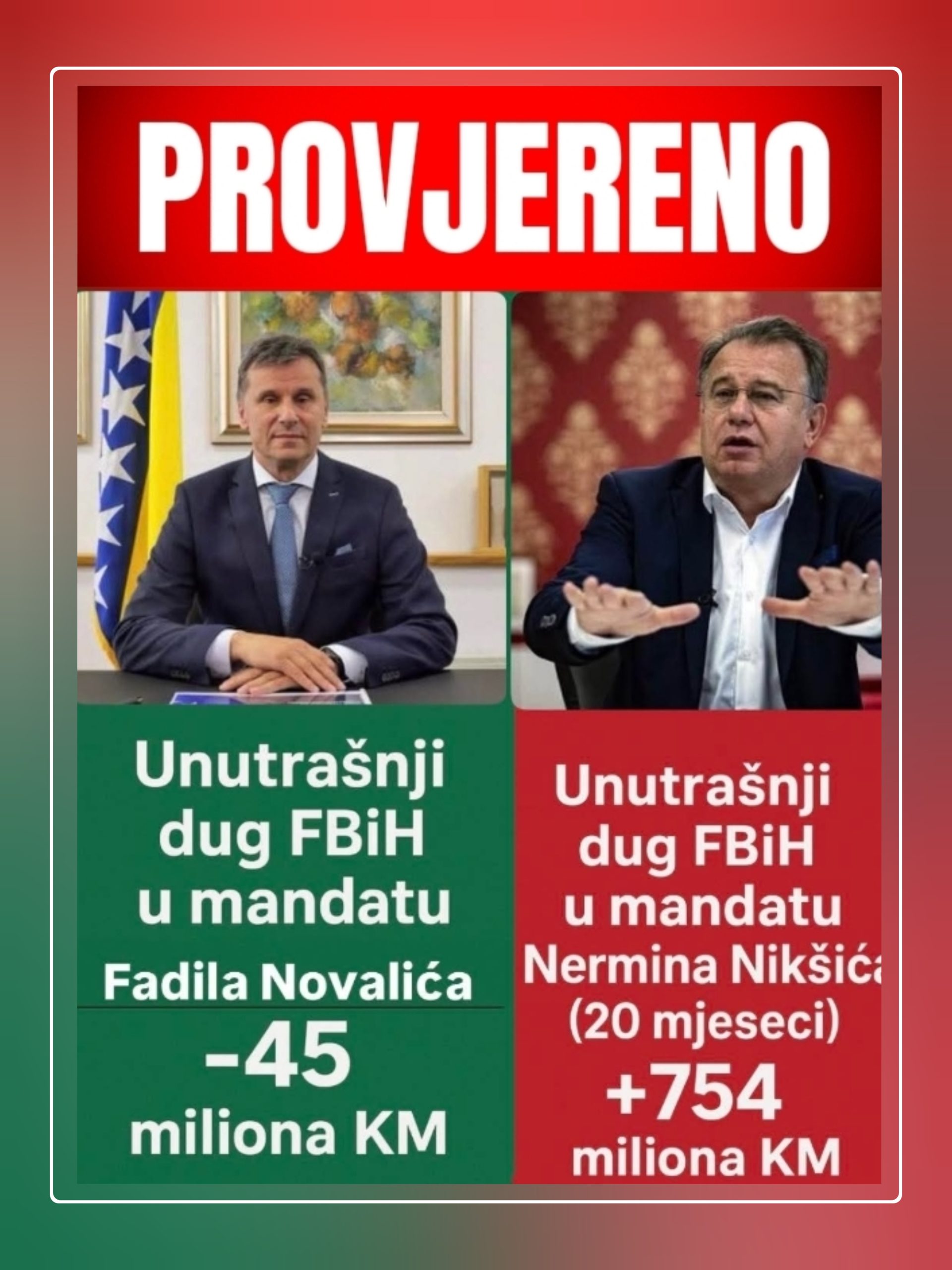 Dakle, za samo godinu i osam mjeseci, Trojka je povećala unutrašnji dug Federacije BiH za čak 754 miliona KM.