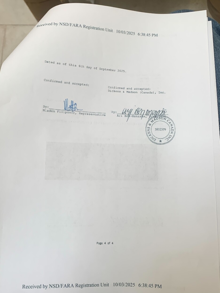 Konaković je istaknuo da je ugovor potpisan u septembru 2025. godine sa lobističkom kućom Dickens & Madson iz Kanade koju vodi, kako kaže, bivši operativac Mossada Ari Ben-Menashe, rođen u Iranu.