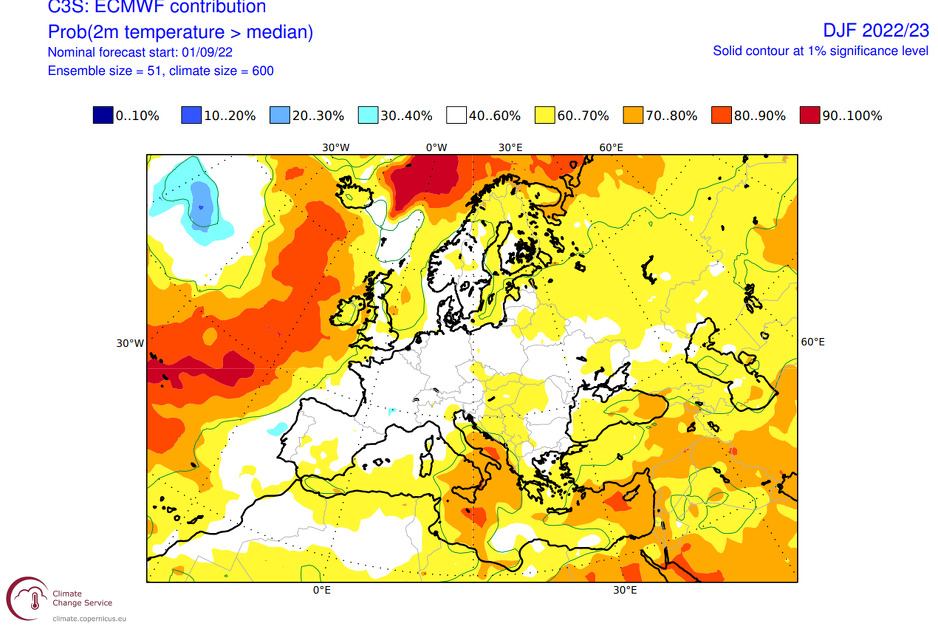 U Evropi se zatim očekuju prosječne temperature zraka na zapadu, uz utjecaj obližnjeg područja niskog tlaka. Toplije anomalije, odnosno nešto više temperature od prosječnih predviđaju se nad dijelovima srednje Evrope, dižući se prema sjeveroistoku.