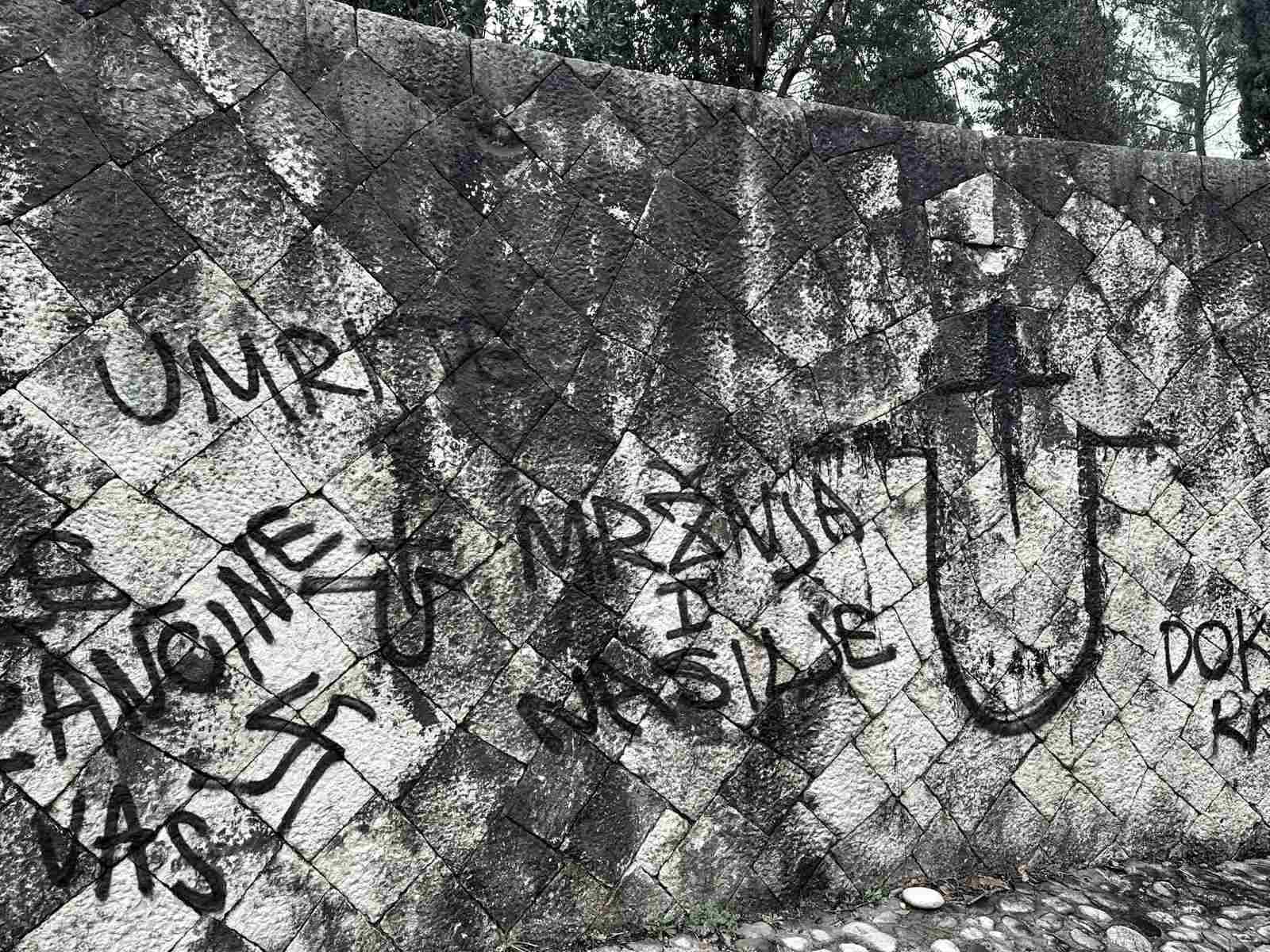 Kajan je naveo da su na kompleksu, koji je projektovao svjetski poznati arhitekta Bogdan Bogdanović i koji je pod zaštitom države, ponovo ispisani uvredljivi i ideološki sporni grafiti.