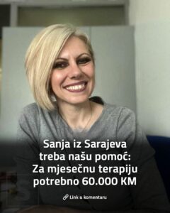 “Od 2023. godine vodim tešku borbu sa izazovom zvanim bolest. Od tada pa do danas, zajedno sa svojom porodicom, prijateljima, radnim kolegama, drugovima iz srednje škole, organizacijom Pomozi.ba i mnogim drugim dobrim ljudima, uspjeli smo prikupiti i potrošiti oko 100.000 KM na terapiju – lijek koji je dostupan na recept širom svijeta, osim u Bosni i Hercegovini”, kazala je hrabra Sanja Kriještorac