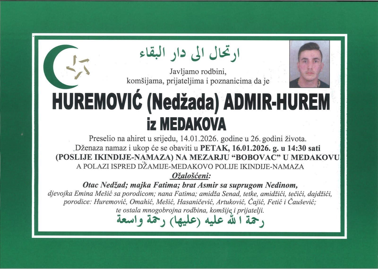| Transportnu zajednicu u Bosni i Hercegovini potresla je vijest o preranoj smrti Admira Huremovića, poznatijeg kao Hurem, vozača kamiona zaposlenog u firmi iz Tešnja. Tužnu vijest javnosti je saopćila Facebook stranica Teretnjaci.ba, okupljalište velikog broja profesionalnih vozača i ljubitelja transporta. |